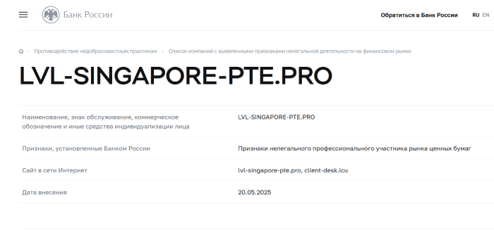 Отзывы о LVL-SINGAPORE-PTE.PRO пишут негативные и, такие комментарии с каждым днем становятся все более частыми. Если пользователи будут взаимодействовать с такими проектами, то они потеряют все свои финансы быстро и уверенно, так что нужно быть внимательнее.