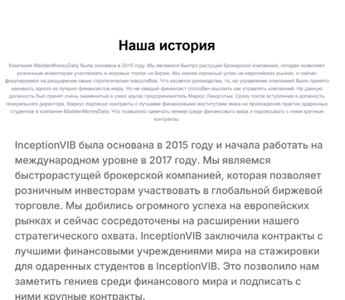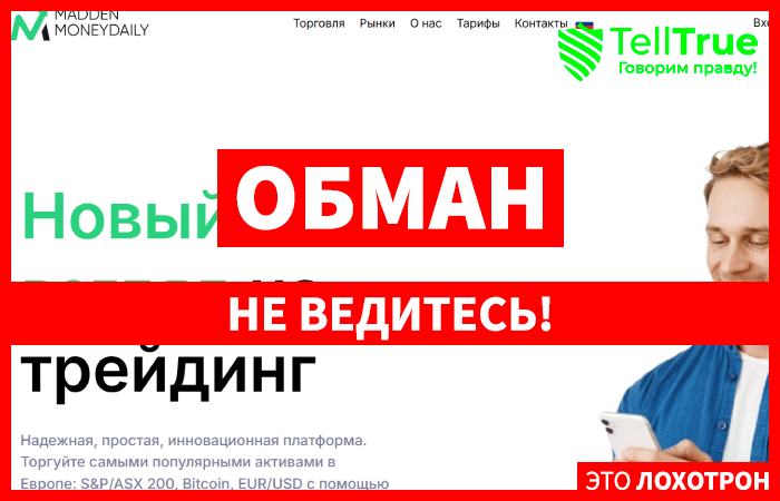 Брокерская платформа MaddenMoneyDaily – это пример творения мошенников, существующего только для кидалова простых людей. Этот лохотрон появился совсем недавно, но его легенда гласит, что работает сайт с 2015 года и, такое же на своих дешевых проектах пишут другие мошенники с того же семейства.