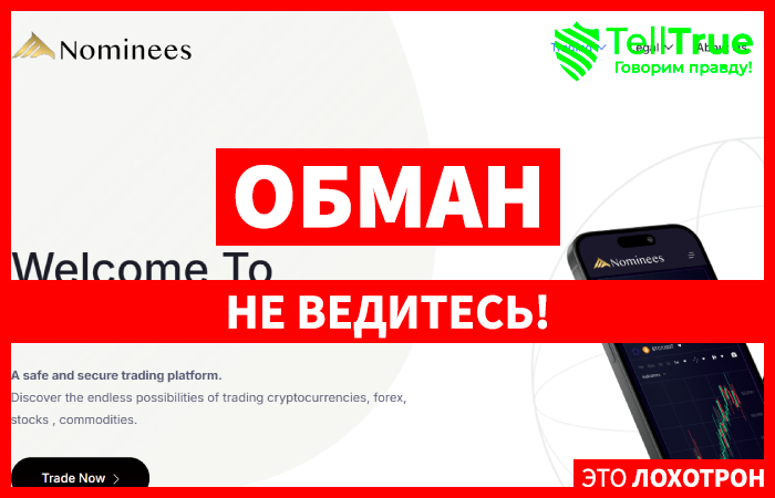 Примером брокерской компании, выданной за проверенный проект, но созданной для кидалова, является лохотрон Nominees INV. Проект был запущен всего три недели назад, но позиционируют его в роли прозрачного и проверенного брокера, что к реальности отношения не имеет даже минимального. Перед нами кухонный лохотрон, приманивающий на липовый терминал за счет красивой рекламы, да бы обмануть побольше людей и кинуть на крупные суммы.