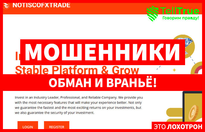 Примером мошеннического брокерского проекта, созданного для обмана простых людей, является организация Notiscofxtrade. Данный проект появился не так уж давно, но мошенники выдают его за надежную и проверенную организацию, да бы убедить клиентов, что те смело могут вносить на терминал компании средства, но делать этого не стоит.