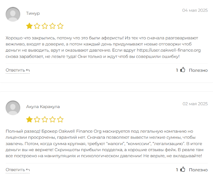 Читая отзывы об Oakwell Finance и работе проекта, можно понять лишь тот факт, что мошенники уже обманули немало простых людей и, именно поэтому от них стоит держаться подальше. Таких проектов с каждым днем становится все больше и, именно поэтому стоит быть внимательнее, не попадая на кидалово.
