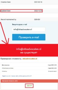 Если начать копать глубже — и мы это сделали — открывается масса интересных деталей. Например, дата создания сайта. Как оказалось, веб-ресурс зарегистрирован в сети 16 февраля 2021 года, затем был обновлен 20 декабря 2022. И вот тут возникает вопрос — неужели сайт не использовался уже больше двух лет? Нет, конечно, просто мошенники скрыли дату обновлений, чтобы выглядеть солиднее. Еще один красноречивый момент: стоимость ресурса. Платформа фактически стоит 262 рубля. А ведь юридические сайты, как правило, требуют серьезных вложений. Что говорит это о качестве работы? Вопрос, как говорится, риторический.