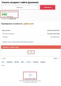 Теперь немного о фактах. Мы провели проверку — оказалось, что активность на сайте началась только 13 дней назад, то есть 16 апреля 2025 года. Стоимость сайта — 1 рубль. Это даже не смешно. Вы бы доверили свои деньги проекту, который стоит дешевле упаковки чипсов?