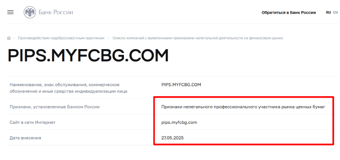 Примером фальшивого брокера, выдающего себя за честную компанию с целью выманивания денег, является организация PIPS.MYFCBG.COM. Этот проект позиционирует себя, как надежного брокера, предлагающего торговать криптовалютами и другими выгодными активами, а на самом деле, за красивыми сказками маскируется наглый обман.
