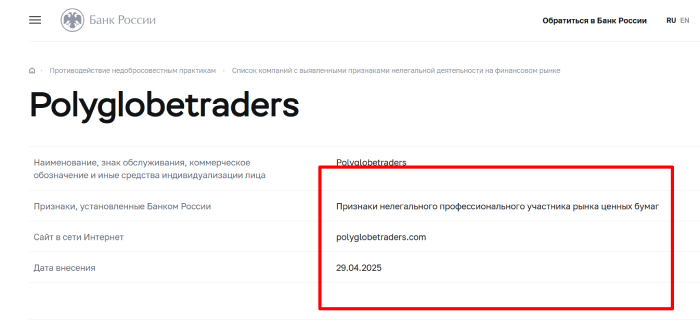 Читая отзывы о Polyglobetraders и работе проекта, позитива абсолютно не найти. его тут и быть не может в принципе. Перед нами организация аферистов, что замаскирована под брокерскую компанию и, создана для кидалова простого населения. Именно поэтому пользователям стоит не верить разным брокерам, а научиться их проверять, да бы не стать жертвой обмана.