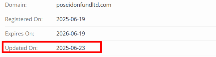 - период работы компании – конкретика относительно года основания компании не указана, а сайт был зарегистрирован 19 июня 2025 года (https://www.whois.com/whois/poseidonfundltd.com);