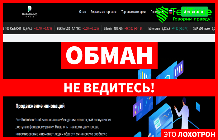 Очередной брокер фальшивка активно продвигает «Умные инвестиции в будущее». Организация Pro-Robinhoodtrades (pro-robinhoodtrades.com) рассказывает о трейдинге и инвестициях нового поколения с профессионалами, дает понять, что на ее платформе зарабатывают все, а на самом деле – это обман, не имеющий отношения к реальности.