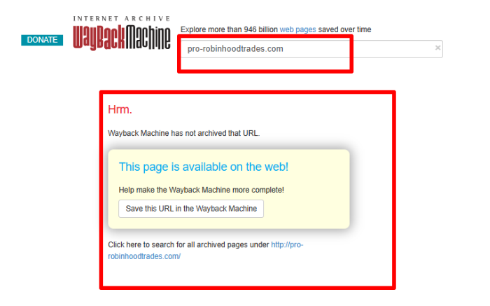 Дополнительно история сайта была посмотрена через портал Веб архив (https://web.archive.org/web/20240415000000*/pro-robinhoodtrades.com). Она еще раз дала понять, что ресурс совсем новый и внимания не заслуживает.