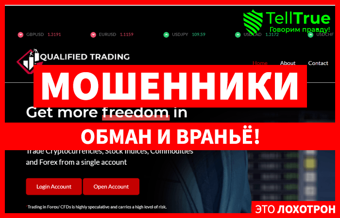 Проект Qualifiedtrading является примером брокерской организации, созданной для выманивания денег и кидалова простых людей. Данную платформу пытаются позиционировать, как надежного и проверенного брокера, но перед нами просто мошеннический проект, что обманывает обычных людей, присваивая себе их финансы.