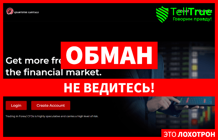Брокер Quantsyde Capitals является примером типичного посреднического лохотрона, созданного для кидалова клиентов. Данная организация была основана недавно наглыми мошенниками, вместе с тем, на самом сайте пишут, что брокер авторитетный. Компания якобы имеет клиентов в разных государствах и, работает полностью прозрачно, но по факту это вообще не так.