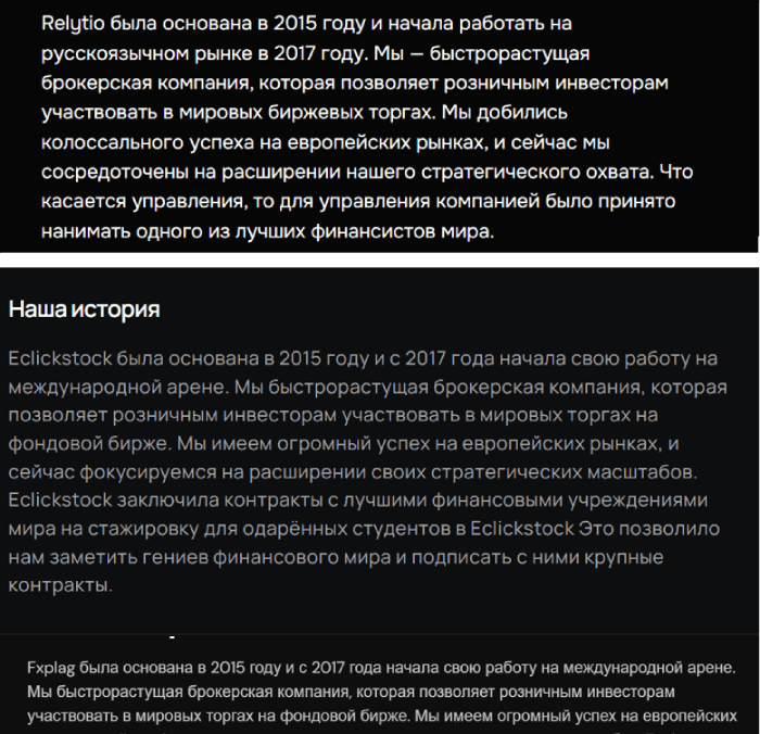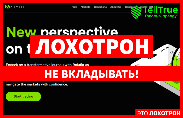 Примером платформы, созданной серийными мошенниками для обмана пользователей сети, является организация с наименованием Relytio. Первое визуальное знакомство с проектом уже дает понять, что основали и запустили его мошенники, на счету которых уже много похожих брокерских лохотронов.