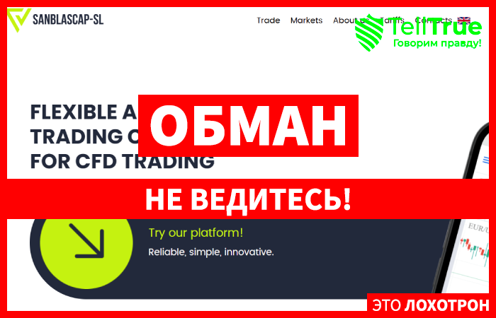 Примером типичного липового брокера, обещающего клиентам чуть ли не золотые горы, является организация SANBLASCAP-SL. Проект появился не так уж давно, а его основатели говорят о том, что компания предоставляет услуги с 2013 года. Данные о ее статистике, прописке и лицензировании – это выдумка, что не имеет даже минимального отношения к реальности.