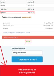 Стоимость веб-ресурса — 244 рубля. Вы серьезно верите, что уважаемая юридическая компания может существовать на таком дешевом сайте? Настоящие фирмы инвестируют в свою репутацию, а не создают одноразовые платформы. Актуальной контактной информации нет. Да, на сайте указывается номер телефона +421 948 383 363 и электронная почта info@smartup.sk, вот только они фейковые. Только форма обратной связи, после заполнения которой вам перезвонят с одноразового номера и начнут активно уговаривать «оплатить небольшой сервисный сбор» или «комиссию за подачу документов». Вывод очевиден — SMARTUP не поможет вам вернуть деньги, а лишь заберет остатки.