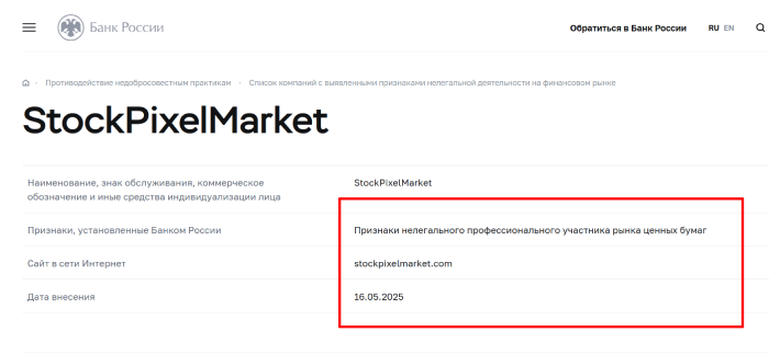 Примером лжеброкера, выдающего себя за проверенную компанию, является организация StockPixelMarket. Этот проект рассказывает привлекательную легенду о своем существовании с 2019 года, прописке и лицензировании на территории Великобритании. Также пишут о хорошей статистике, инновационных инструментах, лучшем терминале. Звучит красиво, но не является правдой.