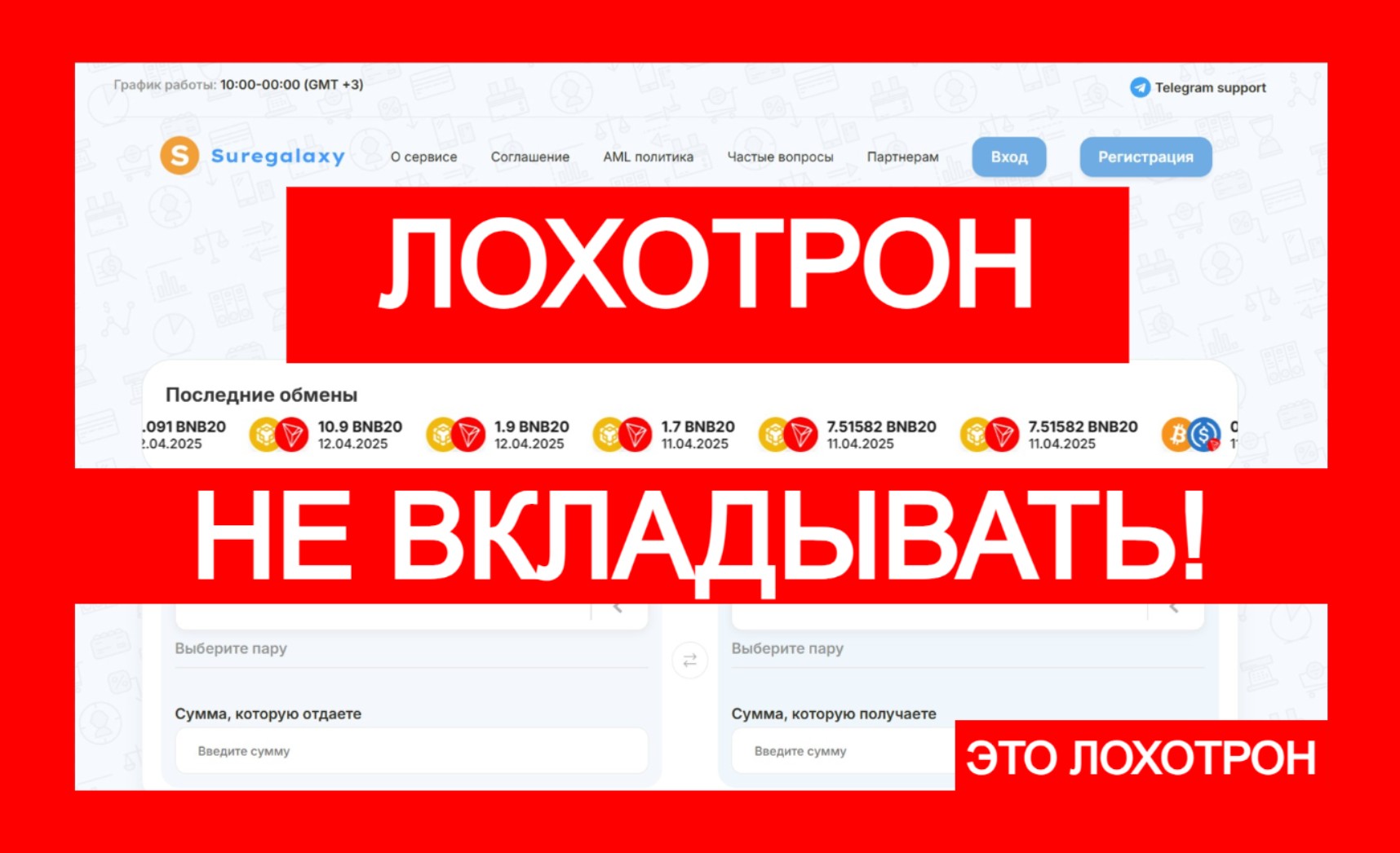 Если вы всерьез задумывались о том, чтобы войти в мир криптовалютных инвестиций, скорее всего вам уже попадались красивые обещания вроде: «начните прямо сейчас», «зарабатывайте без опыта», «доход за сутки — десятки процентов». Признаться честно, звучит заманчиво. А когда за этими словами стоит малоизвестный обменник с модным названием вроде Suregalaxy, многие теряют бдительность. Ну а зря. Мы решили изучить эту «инновационную площадку» повнимательнее, и что обнаружили — расскажем прямо сейчас.