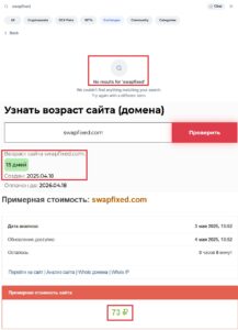 Что по срокам? Тут тоже все ясно. Проект появился на свет буквально недавно — чуть больше двух недель назад. Да, именно так. Сайт активен с 18 апреля 2025 года. Разве серьезные биржи работают так мало? Конечно, нет. А еще, как нам удалось выяснить, домен был куплен за какие-то символические деньги. 73 рубля — буквально. Это даже не инвестиция, а мизер.