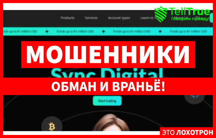 Примером нечестного брокера, что нагло обманывает простых людей, назвать можно проект Sync Digital. Брокер якобы существует много лет и, является проверенной организацией с хорошей статистикой работы, что и привлекает внимание. Но данные сказки к реальности отношения не имеют вообще, ведь они написаны мошенниками с целью привлечения внимания доверчивых новичков.