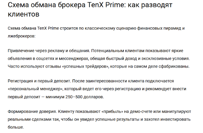 Проект подготовил много подвохов для клиентов и, когда те собираются выводить средства с ТепX Prime. Мошенники придумывают массу поводов, да бы не платить клиентам, а потом вообще перестают выходить на обратную связь. Так мошенники выкачивают достаточно крупные суммы и пользователи остаются с пустыми карманами.