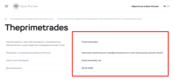 Брокер Theprimetrades – пример мошеннического творения, созданного с целью обмана обычных людей. Этот проект, если верить его создателям, является надежным, проверенным и ориентированным на потребности людей. Его реклама и предложения самого сайта выглядят максимально красиво, людей такие условия часто привлекают, вот они и решаются попробовать начать сотрудничество и, просто теряют свои финансы.