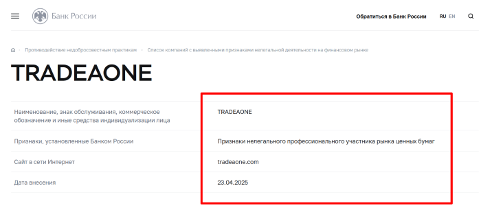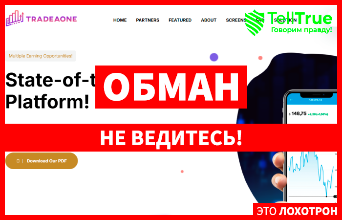 Брокерская платформа, имеющая название TRADEAONE, является примером лохотрона, созданного с целью выманивания из клиентов финансов. Наши нынешние герои не так уж давно запустили свой сайт, но выдают себя за авторитетного брокера и, рекламируют на просторах рунета.