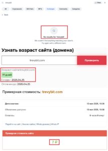 Мы провели техническую проверку. Официальные ресурсы, такие как CoinMarketCap, подобные биржи даже рядом не ставят с легальными платформами. Там — проекты с документами, лицензиями, настоящей историей. А тут? Trevybit не проходит ни по одному признаку легальности. Более того, их сайт по данным Whois появился на свет 25 апреля 2025 года. То есть, на момент подготовки обзора ему и трех недель не исполнилось. И тем не менее — они уже говорят о «долгосрочной работе» и «опыте». Серьезно?