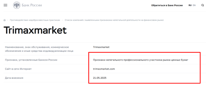 Примером очередного посреднического лохотрона, позиционирующего себя в роли проверенной американской компании, назвать можно проект Trimaxmarket. Эта организация была создана наглыми мошенниками для того, чтобы выманивать финансы с простых людей и присваивать их себе, но лохотрон выдают за надежную и престижную брокерскую компанию.