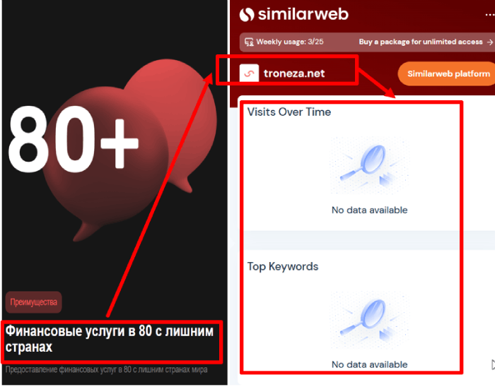 Также мы посмотрели историю ресурса через Веб Архив (https://web.archive.org/web/20250000000000*/troneza.net) и это только подтвердило, что перед нами молодая платформа, а не авторитетная компания. Таких мошенников есть полно и, работать с ними не стоит.