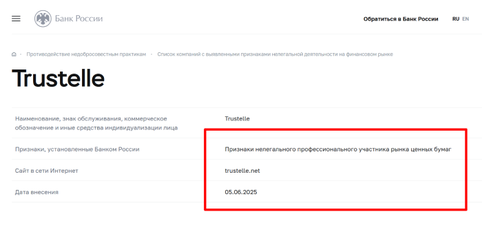 Брокер Trustelle является примером мошеннической организации, что выдает себя за надежного брокера и работает только на присваивание денег. Перед нами проект, рассказывающий красивую легенду с целью кидалова и, сотрудничество с ним однозначно приведет к материальным потерям. Хоть жулики рассказывают о прозрачной работе и лицензировании, на самом деле даже прописки они не имеют и, это факт.