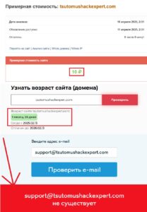 Мы решили проверить, откуда вообще взялся этот проект. С виду, домен старый, только вот по факту мошенники просто создали веб-ресурс 1 месяц и 26 дней назад. Подделка, и притом грубая. Цена вопроса — 10 рублей. Вы бы сами доверили столь важное дело такому дешевому и примитивному проекту? И как вишенка на торте — контакты. Указан почтовый адрес support@tsutomushackexpert.com и номер телефона +1 (256) 956-4498. Проверяйте — они фальшивые. Потому что цель у этих людей не помощь. Цель — вытащить максимум. Не верьте красивым словам, смотрите на факты, проверяйте, не торопитесь. Потому что вернуть потерянные деньги тяжело, а вот не потерять их — куда проще.