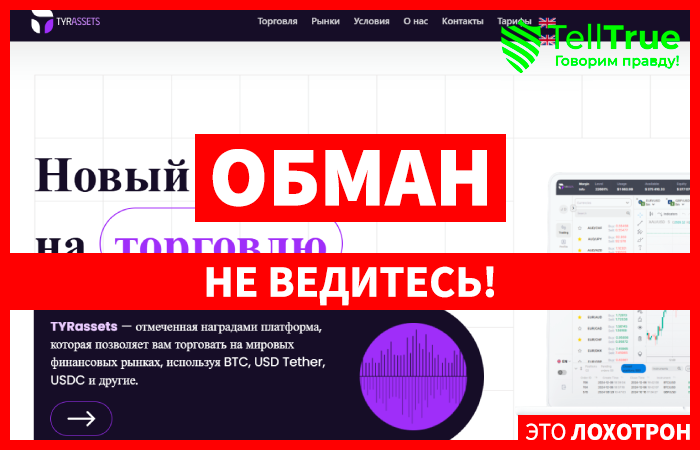 Примером типичного липового брокера мошенника, что обманывает обычных людей и, называет себя авторитетной компанией, когда является лохотроном, назвать можно проект TYRassets. Брокерская платформа существует менее одного года, а данные о ее лицензировании и прописке выдуманные.