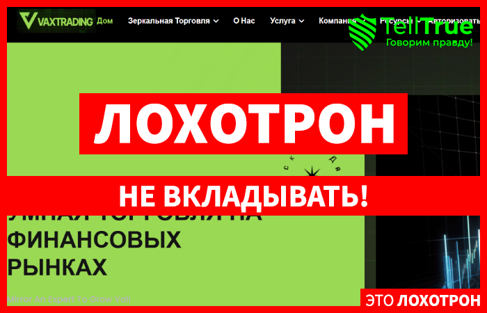 «Умная торговля на финансовых рынках» – вот предложение от очередного брокера мошенника, имеющего название VaxTrading (vaxtrading.com). мошенники рассказывают, что с ними работает более 680000 трейдеров, о прозрачности, регулировании, а вот проверка доказывает, что это на 100% лохотрон, жаждущий чужих средств.