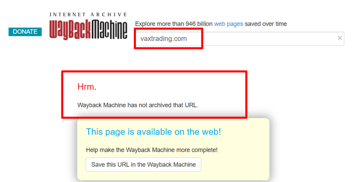 Проверка через Веб архив (https://web.archive.org/web/20250000000000*/vaxtrading.com) тоже доказывает, что сайт свежий и, данные статистические на платформе липовые.