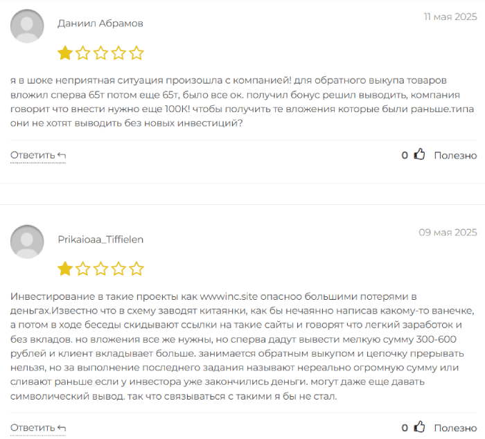 Наши герои не раскрывают данных о своей прописке и другой важной информации, соответственно и сотрудничать с ними не стоит. Отзывы о Wwwinc, написанные реальными пользователями, тоже содержат в себе сплошной негатив и, на это стоит обращать внимание.