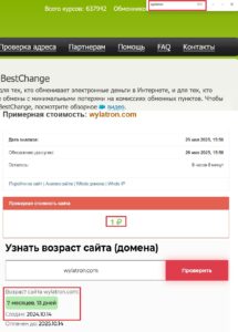 Мы не поленились и проверили проект через сторонние источники. Информация оказалась весьма показательной. Официально указывается, что Wylatron работает уже много лет. Но, если копнуть чуть глубже, оказывается, что домен зарегистрирован только 14 октября 2024 года. То есть на самом деле все гораздо свежее, чем кажется. Это обман, причем уже на уровне базовой информации. А знаете, сколько стоит их сайт? Один рубль. За такие деньги вы вряд ли получите доступ к качественному и честному обменнику. Согласны?