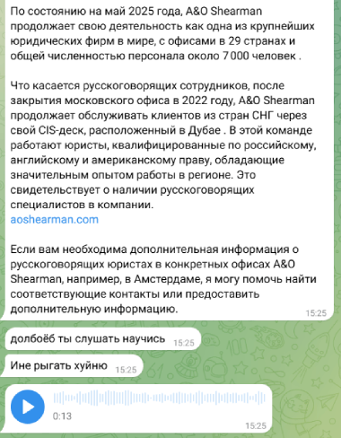 «позвонил мне чувак — начал на русском сказки рассказывать что он представляет юридическую компаний A&O Shearman